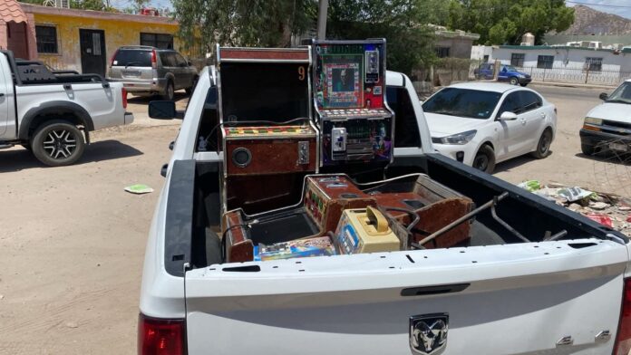 Hermosillo, Sonora, 5 de julio de 2025.- La Fiscalía General de Justicia del Estado de Sonora (FGJES), en coordinación con la Agencia Ministerial de Investigación Criminal (AMIC) y Policía Municipal de Hermosillo, ejecutó operativos conjuntos que permitieron el aseguramiento de 20 máquinas tragamonedas en distintos establecimientos comerciales dentro del casco urbano de Hermosillo y Bahía de Kino.