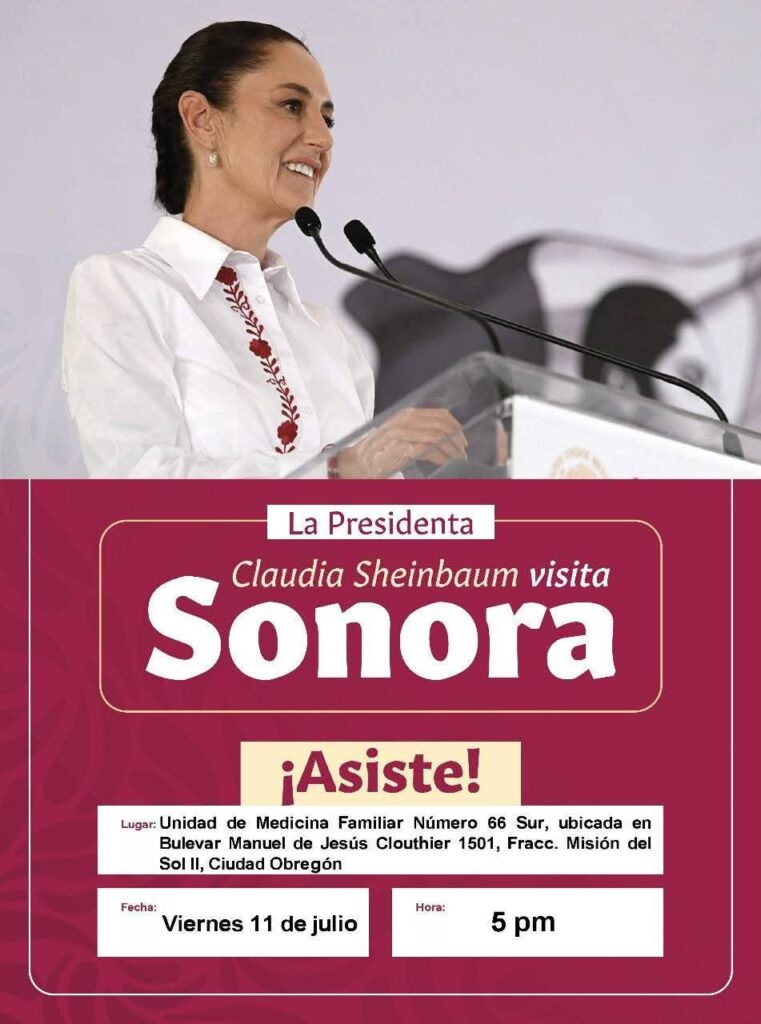 Al finalizar su visita en Sinaloa, la presidenta continuará su gira en Ciudad Obregón, Son. donde encabezará un evento relacionado con el programa de salud “Casa por Casa”, donde se dijo que pernoctará.