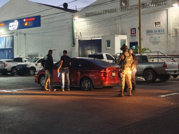 El vehículo de la marca Toyota, tipo Yaris, modelo reciente, fue copado por agentes policíacos y militares en la calle Sufregio Efectivo entre Yaqui y Mayo, muy cerca del Centro Integral de Procuración de Justicia, de Obregón.