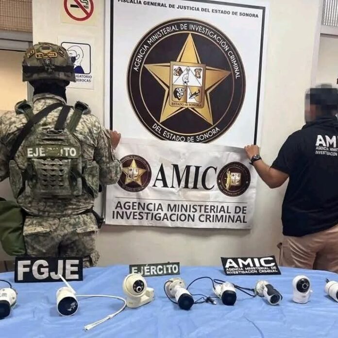 Ciudad Obregón, Sonora. En seguimiento a trabajos de inteligencia y en coordinación con la Secretaría de la Defensa Nacional (DEFENSA), la Fiscalía General de Justicia del Estado de Sonora (FGJES), a través de la Agencia Ministerial de Investigación Criminal (AMIC), realizó un operativo conjunto que derivó en el aseguramiento de cámaras de videovigilancia instaladas de forma clandestina en puntos estratégicos de Ciudad Obregón.