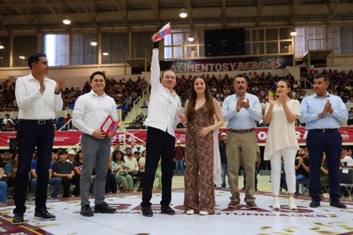 Acompañado de la subsecretaria de Gobernación, Rocío Bárcena Molina y el secretario de Educación y Cultura, Froylán Gámez Gamboa, el jefe del Ejecutivo estatal subrayó que uno de los compromisos más relevantes del gobierno que encabeza es apostar por la formación educativa de la juventud sonorense para garantizar la igualdad de oportunidades.