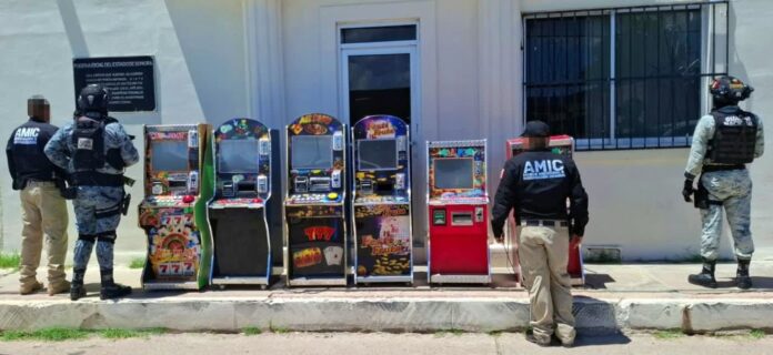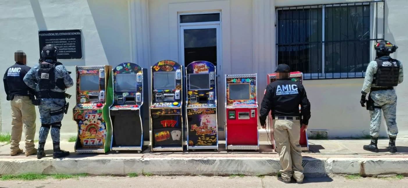 Moctezuma, Sonora, 25 de julio de 2025.- Como parte de los actos de investigación para inhibir actividades ilícitas relacionadas con juegos de azar no autorizados, la Fiscalía General de Justicia del Estado de Sonora (FGJES), en coordinación con la Agencia Ministerial de Investigación Criminal (AMIC) y la Guardia Nacional (GN), realizó un operativo conjunto en Moctezuma, logrando el aseguramiento de seis máquinas tragamonedas.
