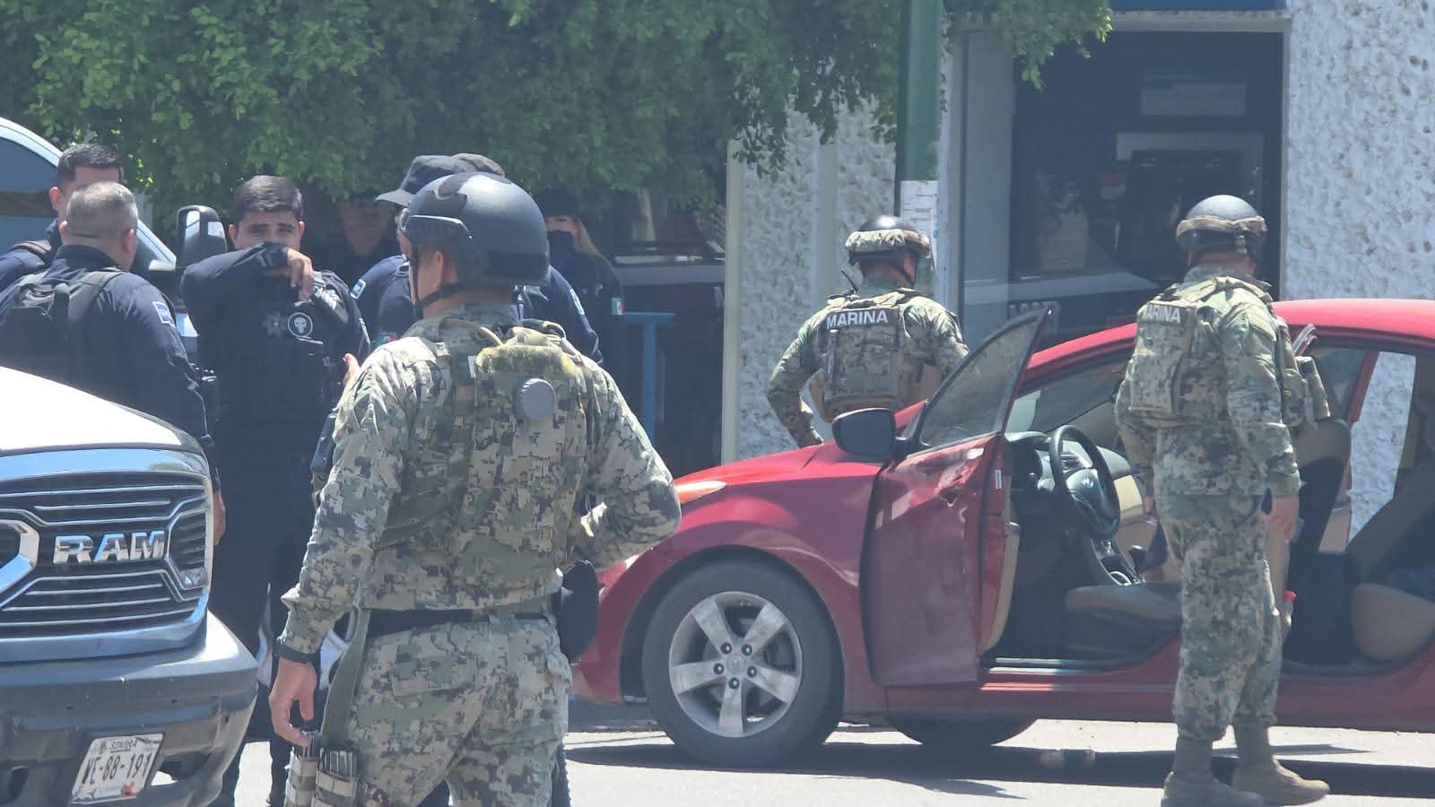Después de persecución y enfrentamiento con autoridades policíacas y militares fueron detenidos dos sujetos en el Centro de ciudad Obregón unos sujetos, a los cuales supuestamente les aseguraron droga y arma de fuego.