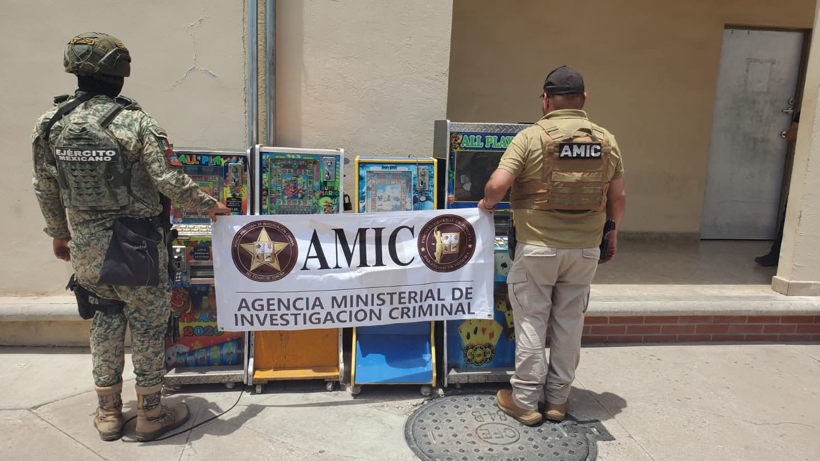 Cajeme, Sonora, 1 de agosto de 2025.- La Fiscalía General de Justicia del Estado de Sonora (FGJES), en coordinación con la Secretaría de la Defensa Nacional (SEDENA), por medio de la Agencia Ministerial de Investigación Criminal (AMIC), llevó a cabo dos operativos exitosos en los cuales fueron aseguradas un total de ocho máquinas tragamonedas, mismas que quedaron a disposición del Agente del Ministerio.