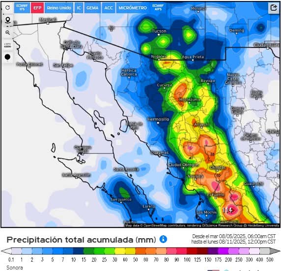 Hermosillo, Sonora; 5 de agosto de 2025.- El Gobierno de Sonora, a través de la Coordinación Estatal de Protección Civil (CEPC), informa que durante el próximo fin de semana un cambio en la circulación atmosférica permitiría un mayor ingreso de humedad desde el Océano Pacífico, lo que incrementará la inestabilidad atmosférica en la región.