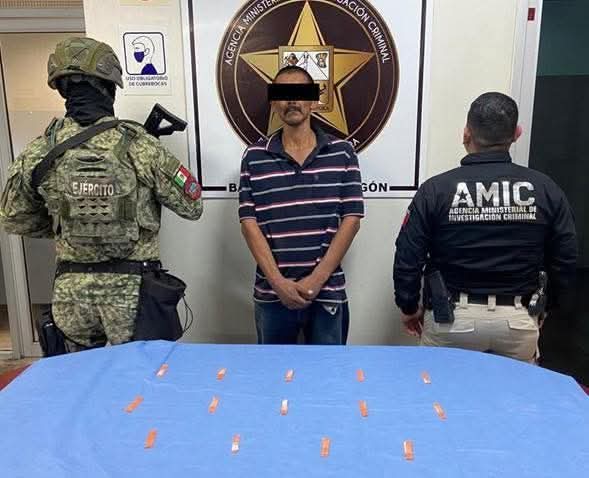 Bácum, Sonora, 16 de agosto de 2025.- La Agencia Ministerial de Investigación Criminal (AMIC), en coordinación con la Secretaría de la Defensa Nacional (DEFENSA), logró la detención de Luis Edilberto “N”, alias “El Chino”, de 42 años, durante un operativo conjunto efectuado en la calle Benito Juárez y bulevar Revolución, en Bácum, Sonora.
