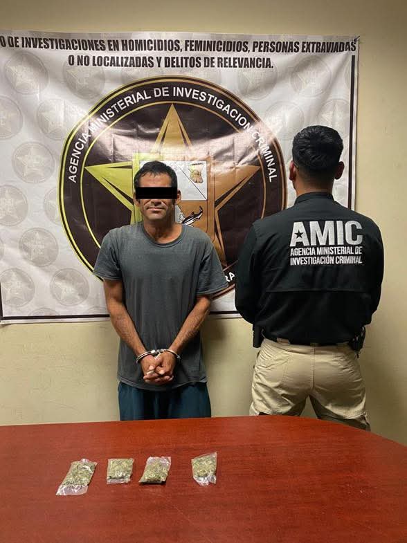 Elementos de la Base Operativa Obregón de la Agencia Ministerial de Investigación Criminal (AMIC) lograron la detención en flagrancia del sujeto, quien portaba cuatro envoltorios de marihuana.