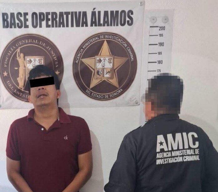 Álamos, Sonora, 15 de octubre de 2025.- La Fiscalía General de Justicia del Estado de Sonora (FGJES), a través de elementos de la Agencia Ministerial de Investigación Criminal (AMIC), capturó a Jesús Teodoro “N”, de 26 años, y posteriormente en audiencia ante el Juez obtuvo la imputación por su probable responsabilidad en los delitos de feminicidio y contra la salud en su modalidad de narcomenudeo en la conducta de posesión de cocaína con fines de venta.