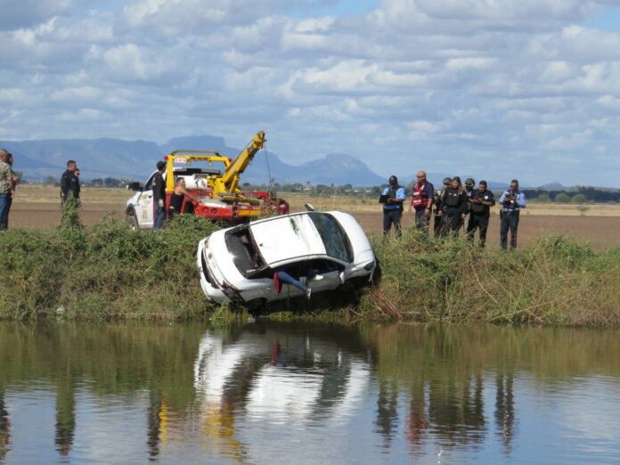 Como a las 10:30 horas reportaron un vehículo en el interior del agua del canal Bajo, cerca del ejido Tepeyac (Campo Dos)