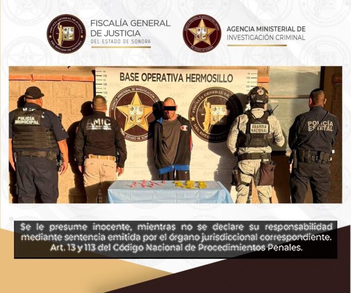 Hermosillo, Sonora, 21 de enero de 2026.- La Fiscalía General de Justicia del Estado de Sonora (FGJES) aseguró a una persona y droga durante un cateo en un domicilio de la colonia Revolución I en Hermosillo.